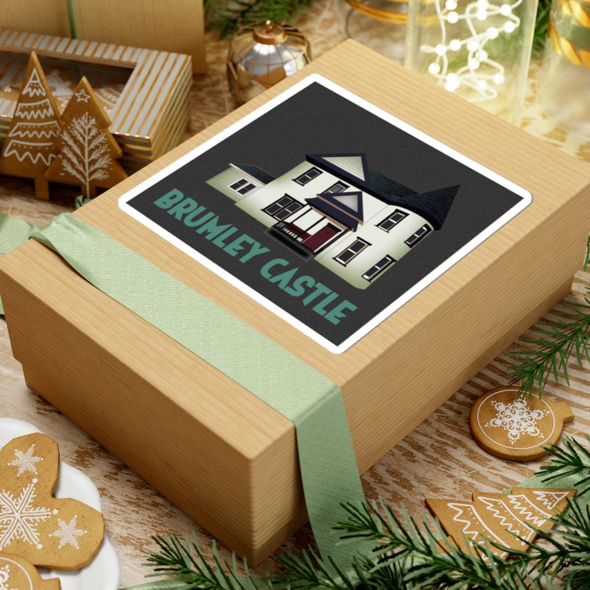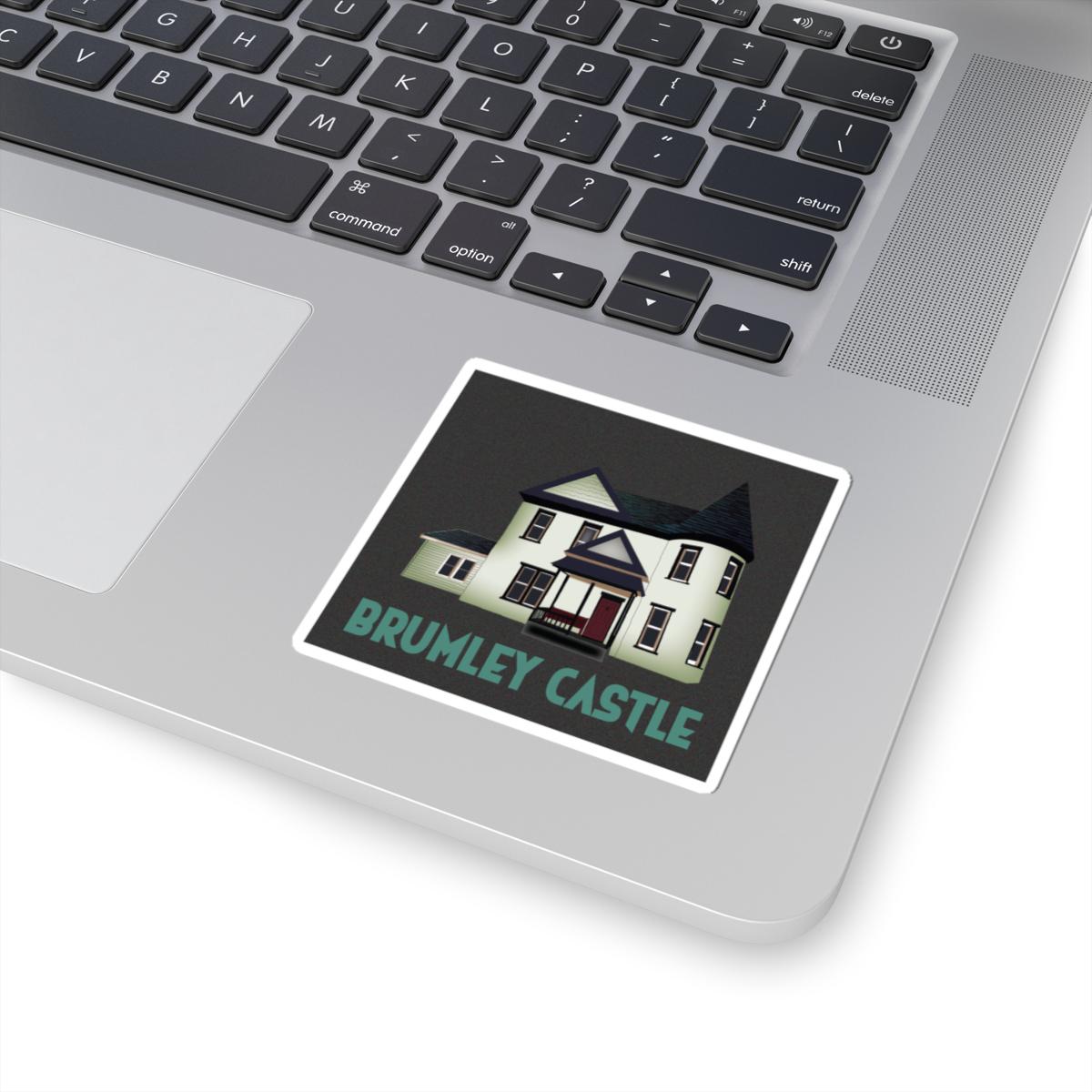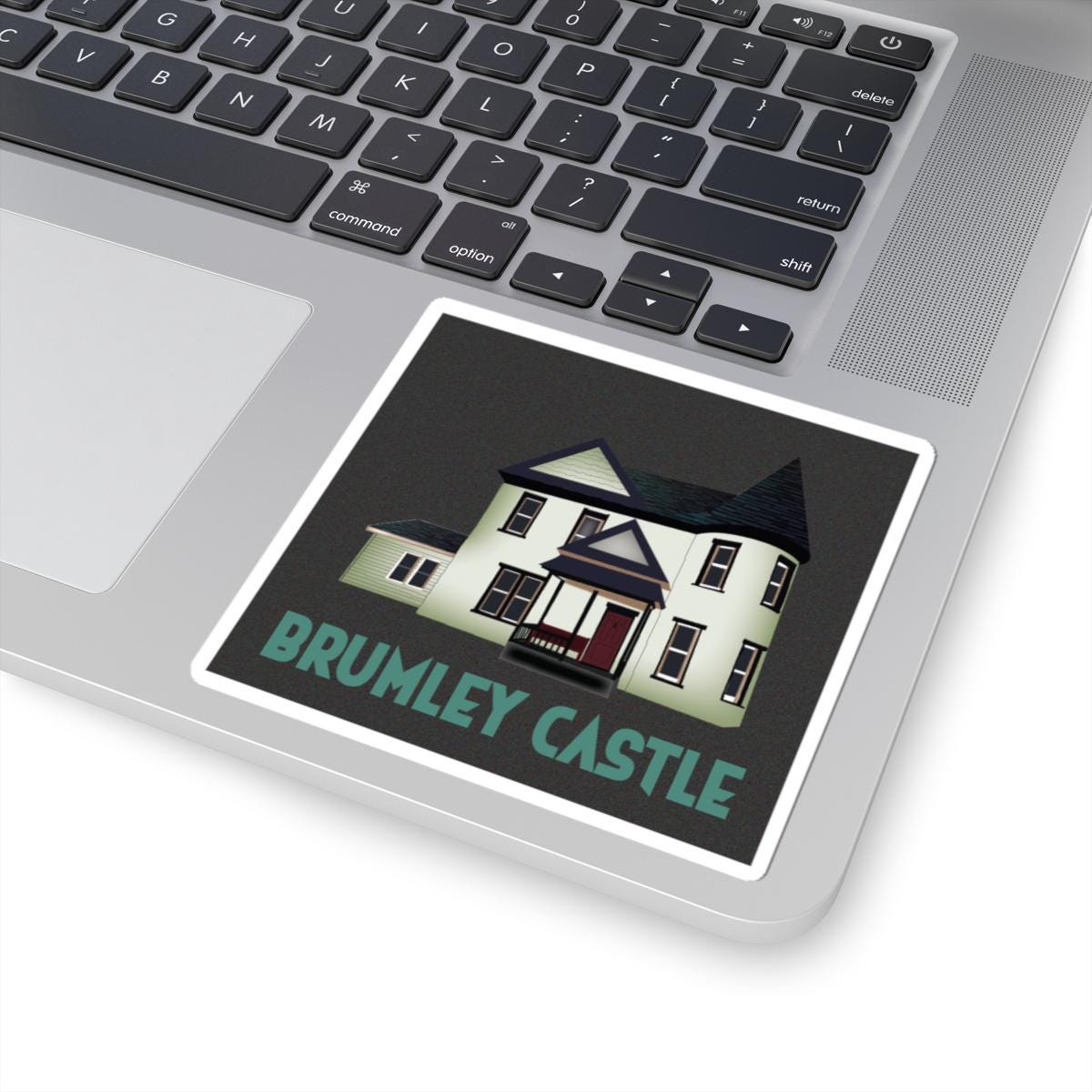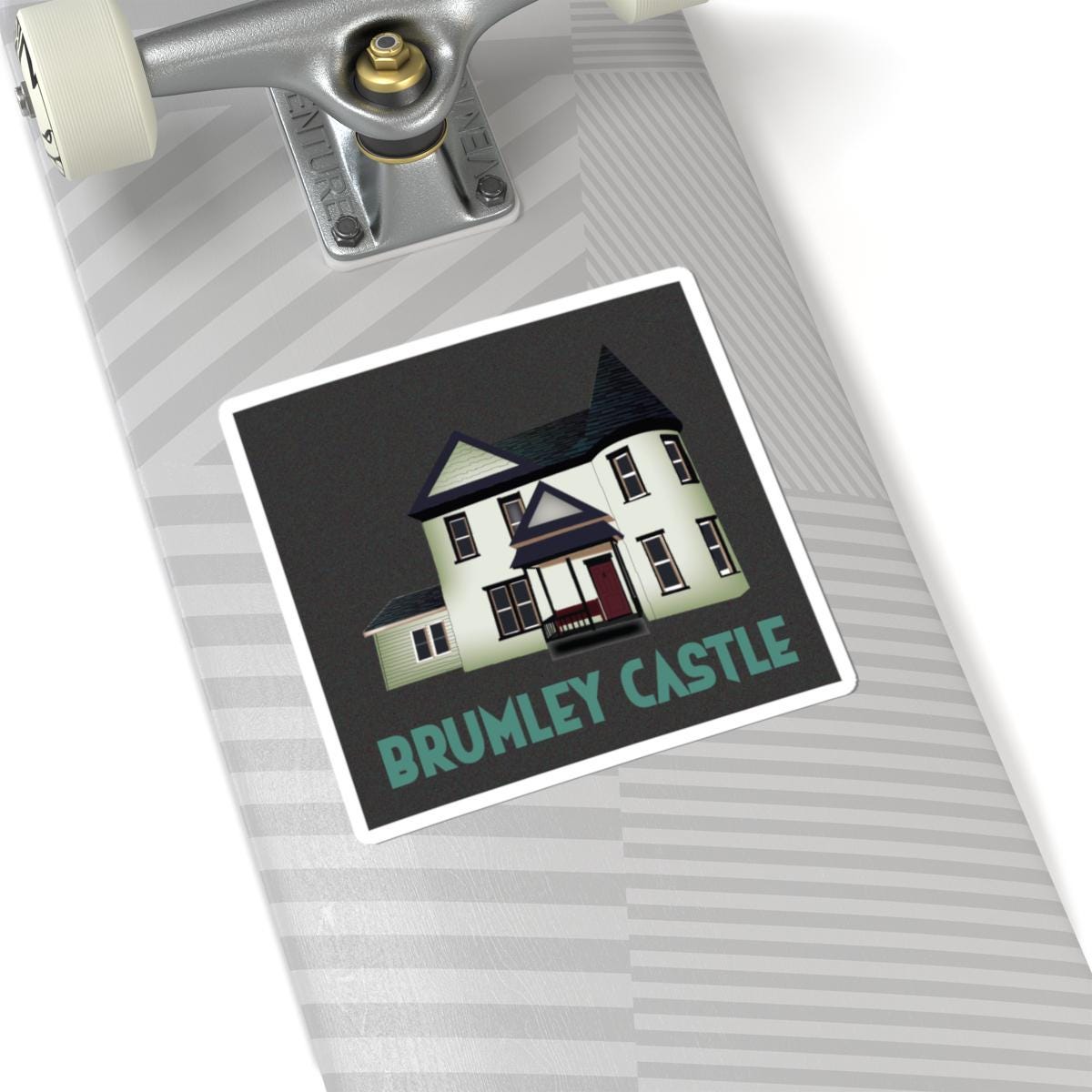 Give your favorite surfaces a touch of cozy mystery with this glossy kiss-cut vinyl sticker. The design features a stylized vintage house rendered in muted creams and teal accents, set against a deep charcoal field with bold, art-deco inspired lettering: “BRUMLEY CASTLE.” It feels like a page torn from a retro travel poster or a handcrafted tarot card—nostalgic, a little eerie, and quietly charming. Place it on a laptop, journal, sketchbook, or window to mark your territory with personality. The glossy finish makes colors pop and the permanent adhesive keeps the sticker flat and neat for years of display indoors.