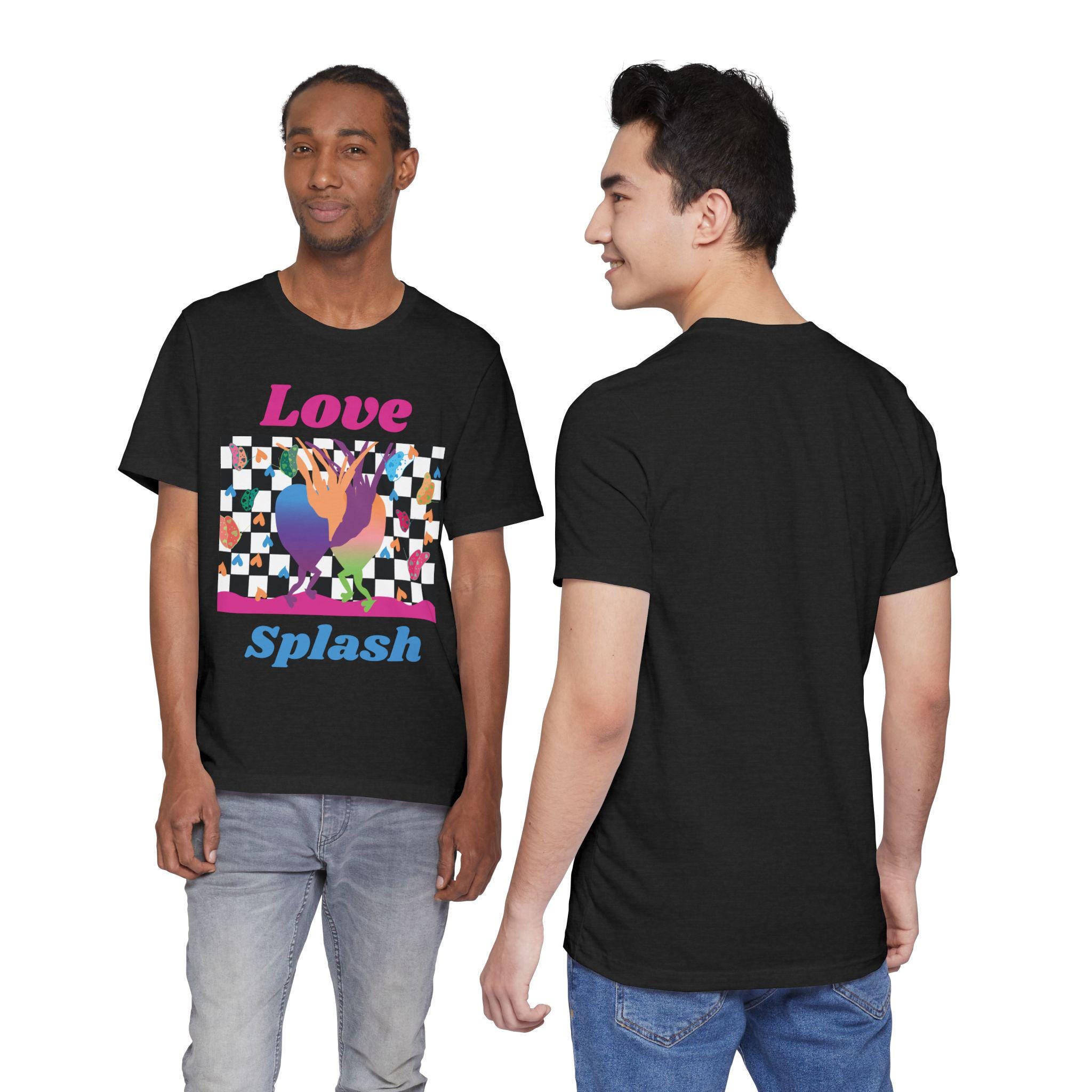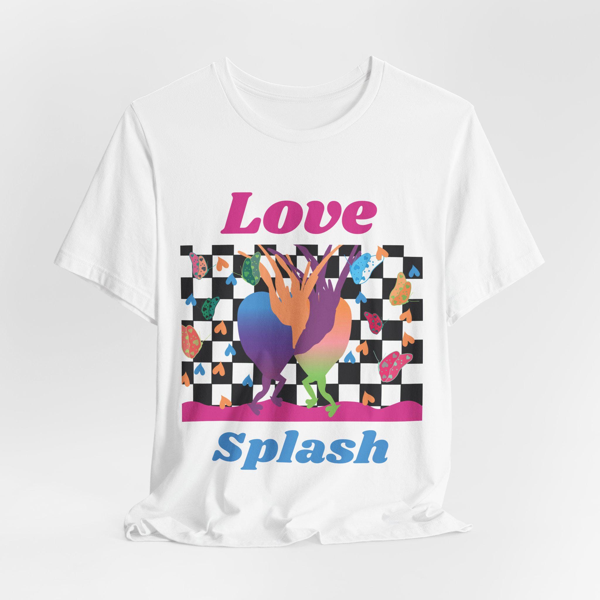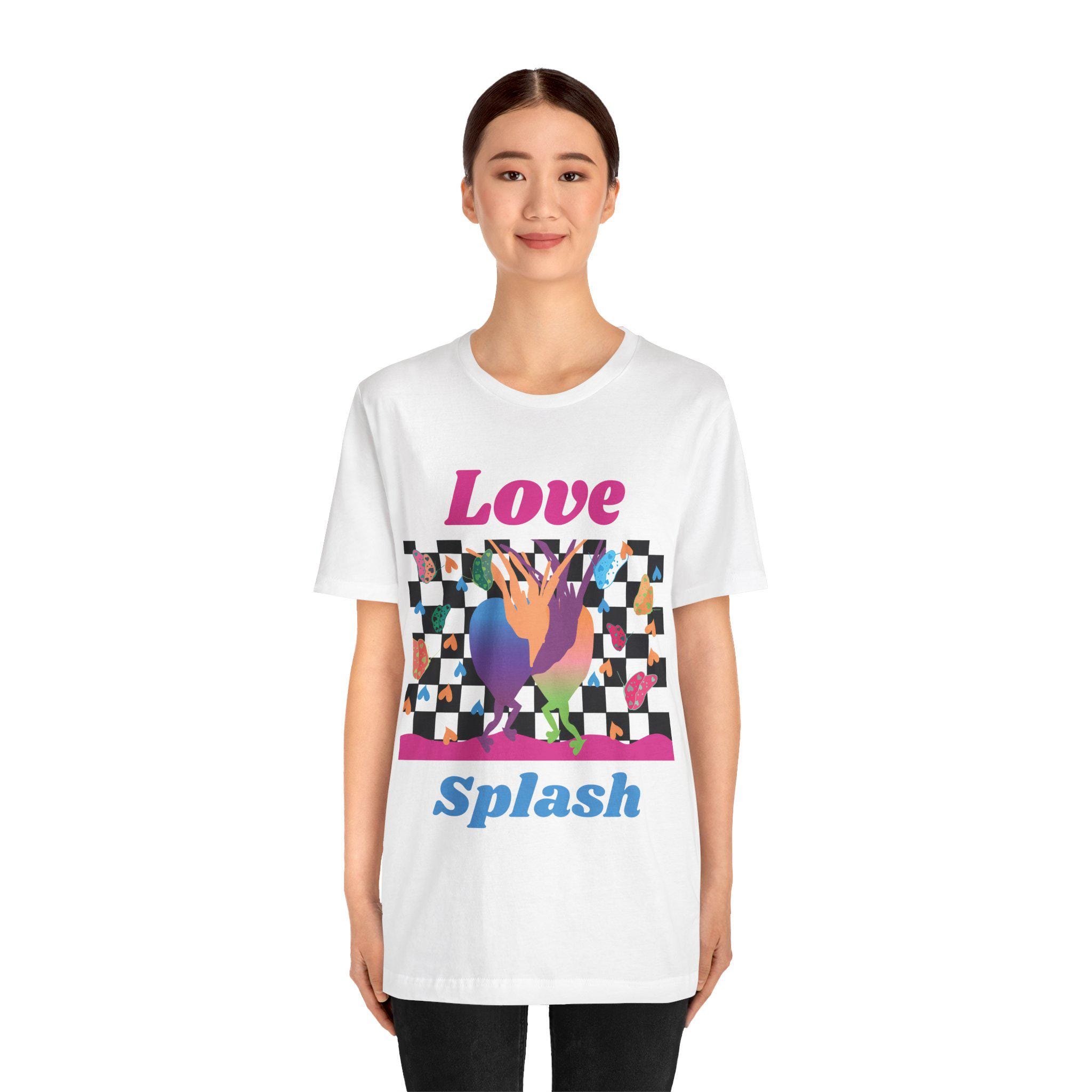 This lightweight cotton tee carries a retro-meets-surf energy — bright, playful, and unapologetically joyful. A checkerboard backdrop frames a colorful sunset orb and a stylized diver, while lively floral and wave motifs peek through the squares. ‘Love’ arches above in warm pink and ‘Splash’ anchors the design in cool blue, giving the shirt a nostalgic summer vibe. Wear it to add an easy, expressive layer to beach days, music fests, or weekend hangs — it reads like a warm memory come to life: sun on skin, salt on the breeze, and that small rush of something carefree.