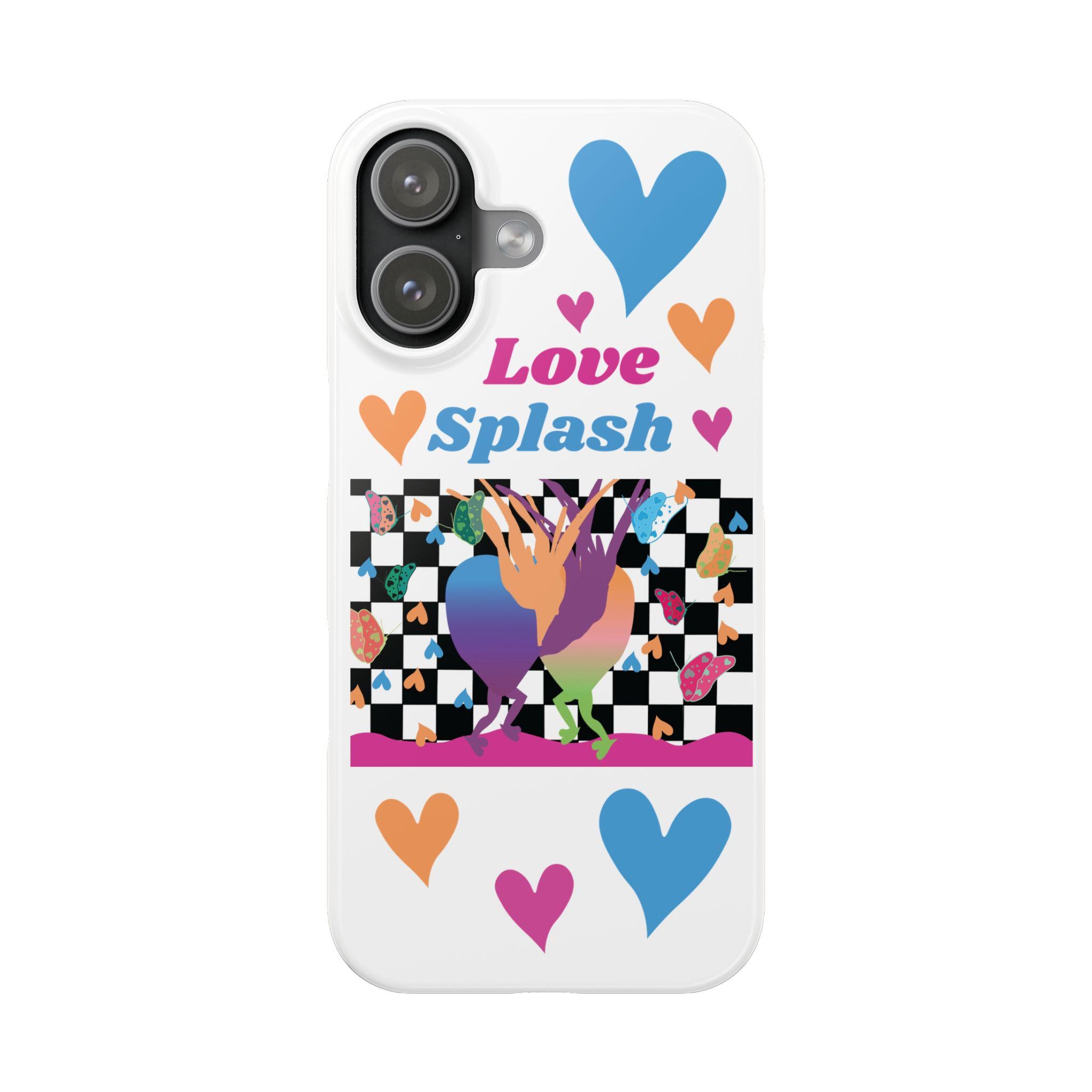 A slim, glossy phone case that brings bright, playful energy to your everyday carry. The lightweight Lexan shell keeps your device protected from small scratches and impacts while staying barely-there in your pocket. Bold hearts, a splash of checkerboard, and colorful typography turn a practical accessory into a cheerful statement piece — perfect for people who love vibrant, nostalgic aesthetics and want their phone to reflect that mood. The glossy finish intensifies printed colors and supports wireless charging so your routine stays simple and colorful.